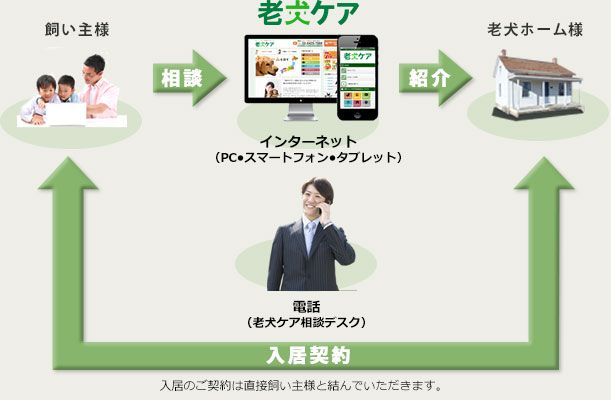 「老犬ケア」はあなたの老犬ホームへお客様をご紹介するサービスです
